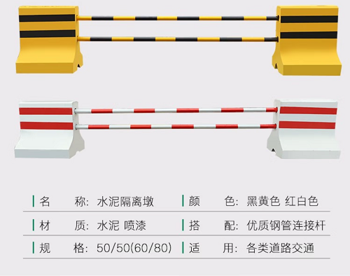 公路水泥防撞墩在生產的時候中間位置會預留兩個孔,在后續水泥墩安裝固定好位置后會在水泥墩之間鏈接鍍鋅桿件,通過預留孔洞的鏈接以起到道路隔離的作用。不需要隔離墩后只需將連接桿卸下挪走水泥墩即可。公路水泥防撞墊搭配的連接桿一般為不銹鋼材質或鍍鋅管。尺寸可根據要求進行定制。