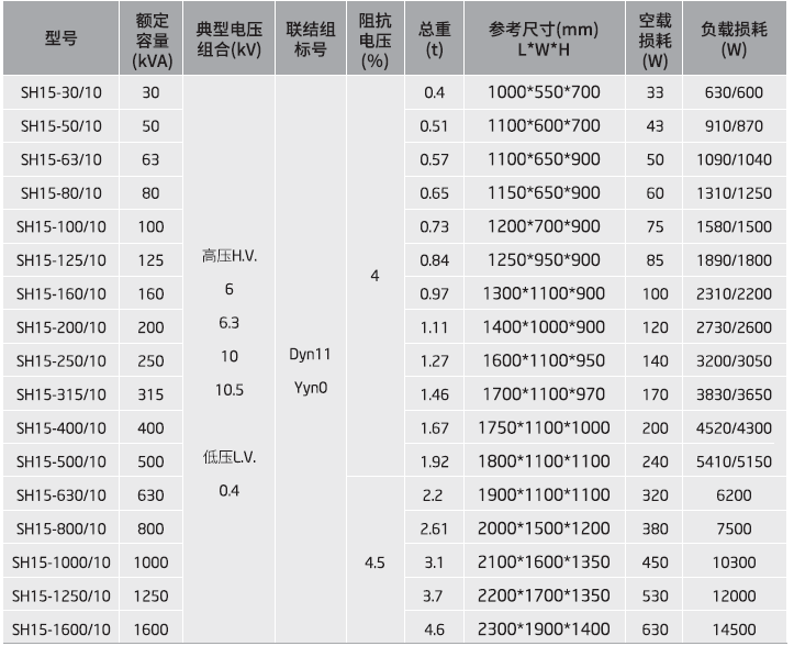7、10kV、6kV 級變壓器--15型(三級能效)非晶平面卷鐵芯系列配電變壓器