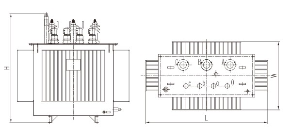 2、總重和參考尺寸為無勵磁調(diào)壓變壓器,有載調(diào)壓變壓器總重和尺寸根據(jù)訂單另行提供。