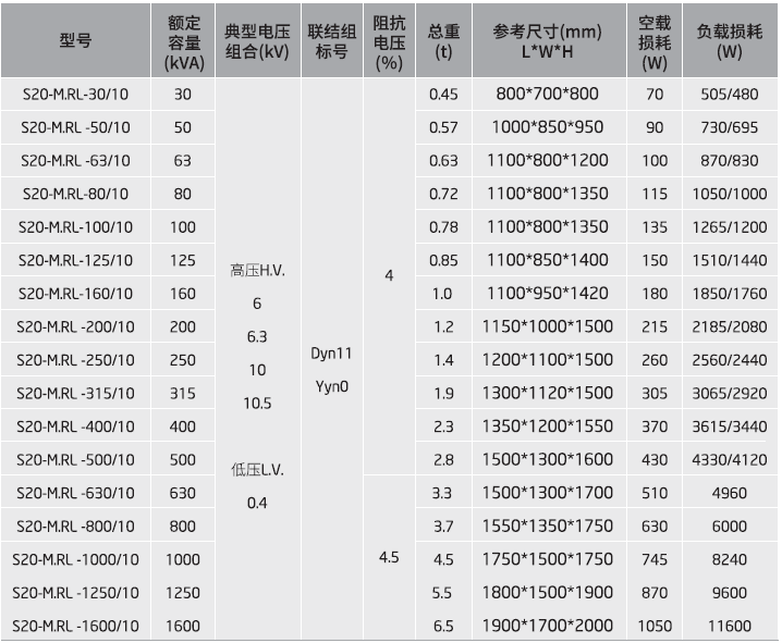 5、10kV、6kV級變壓器--20型(二級能效)立體卷鐵芯系列配電變壓器