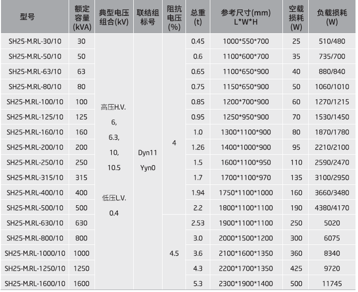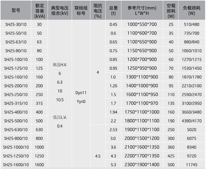 11、10kV、6kV級變壓器--25型(一級能效)非晶立體卷鐵芯系列配電變壓器