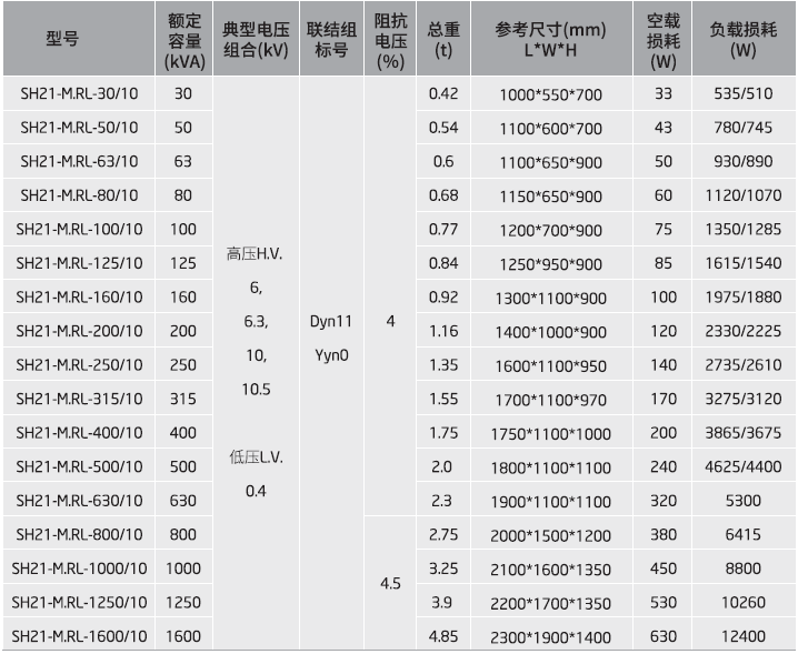 8、10kV、6kV 級變壓器--21型(二級能效)非晶平面卷鐵芯系列配電變壓器