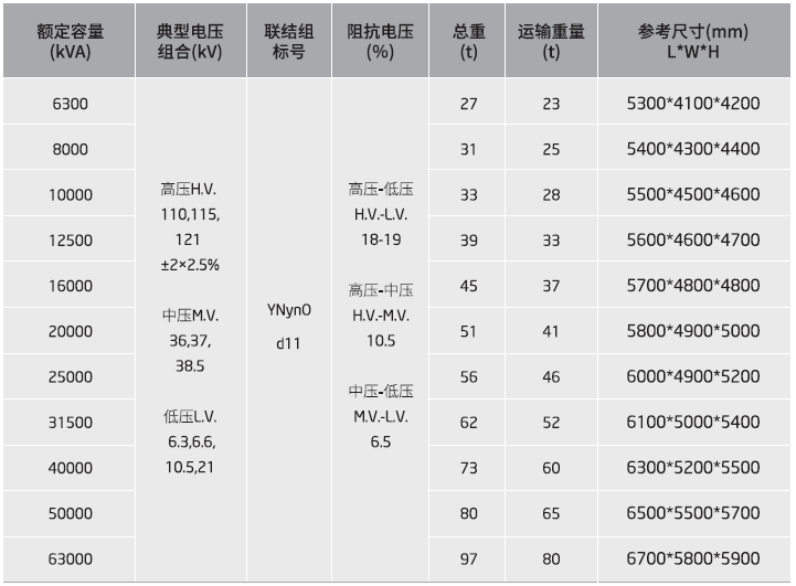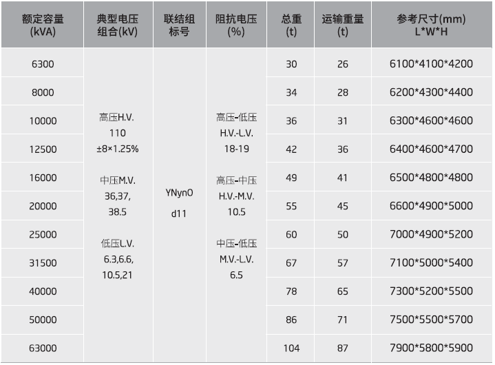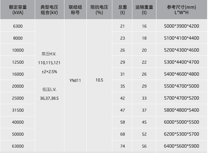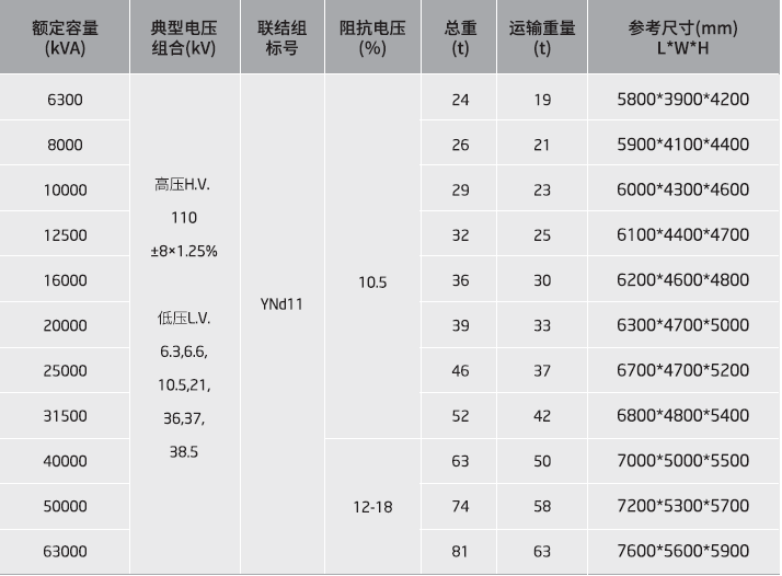 3、110 kV 級(jí)變壓器--自冷(風(fēng)冷)雙繞組有載調(diào)壓系列電力變壓器